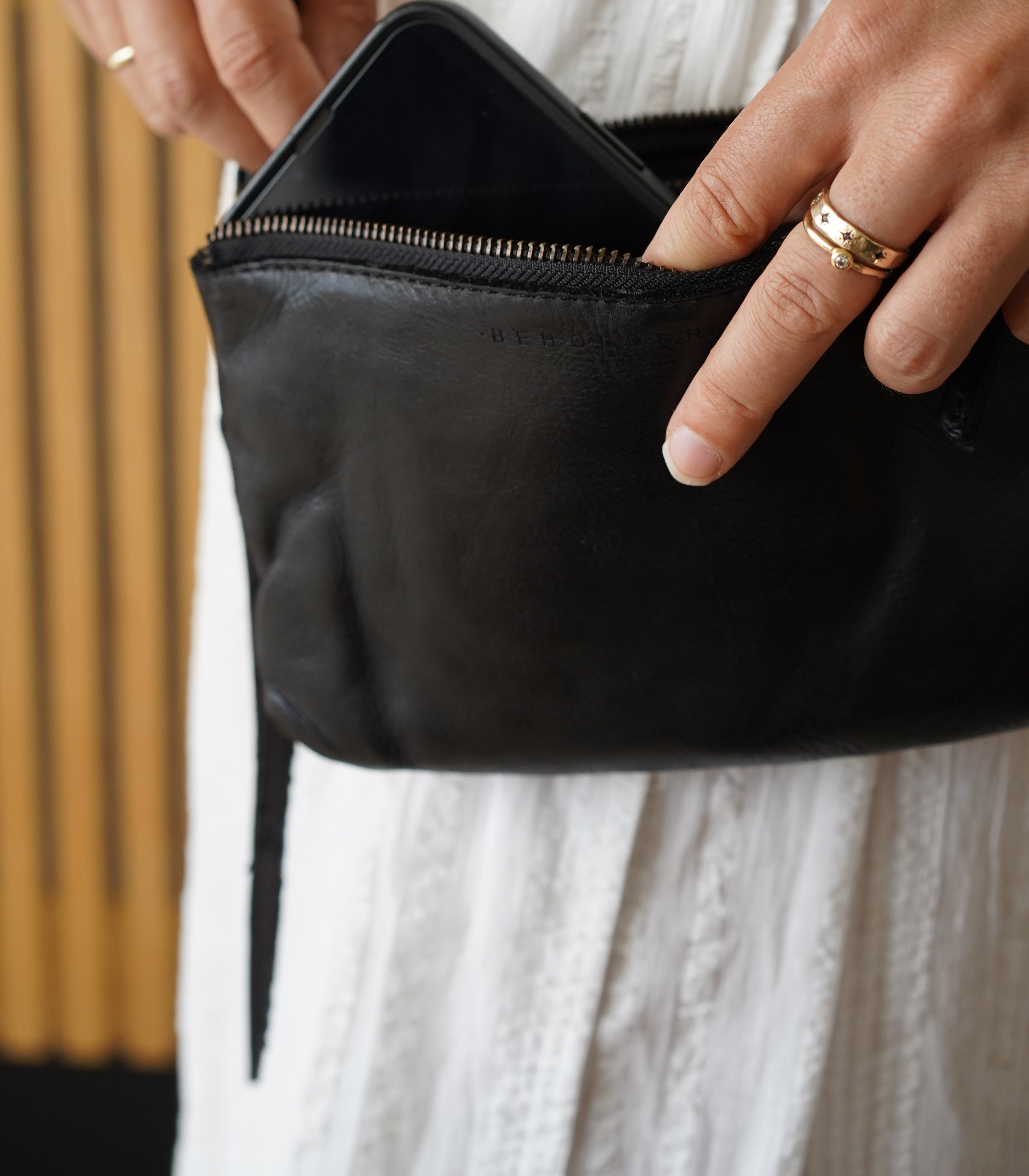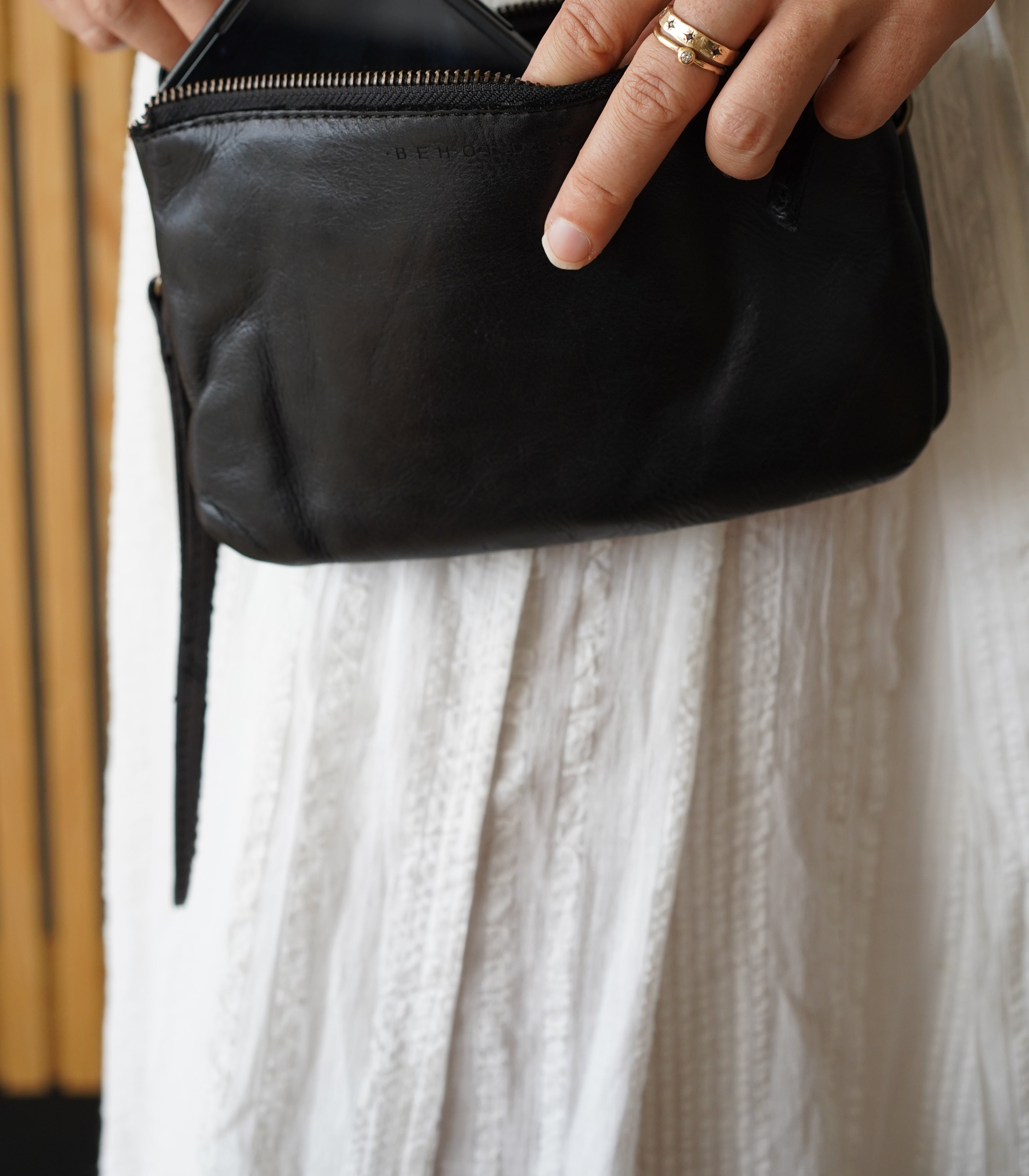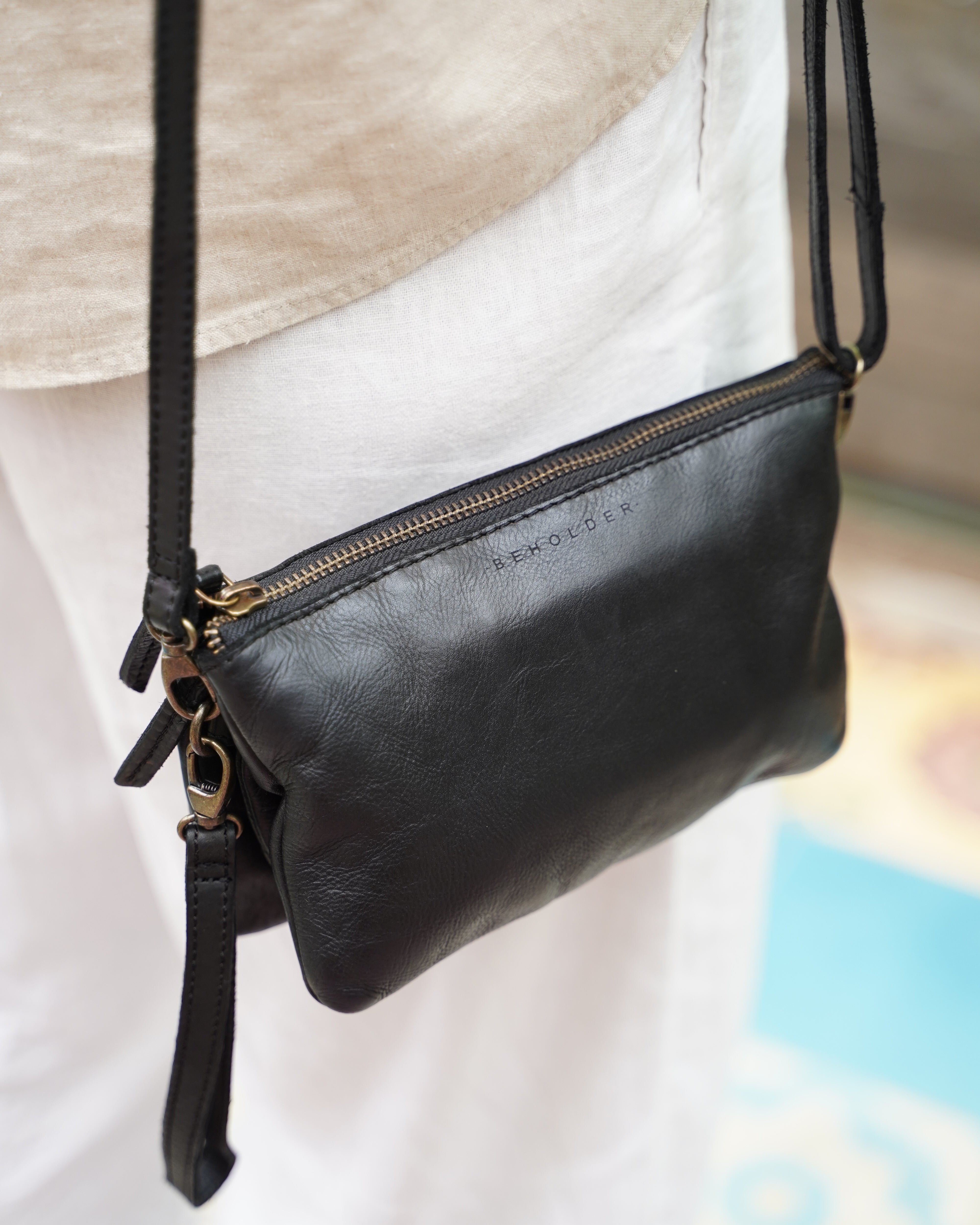 "My Beholder handbag effortlessly complements my style. The thoughtful pockets are really handy! They add a touch of practical glam!"