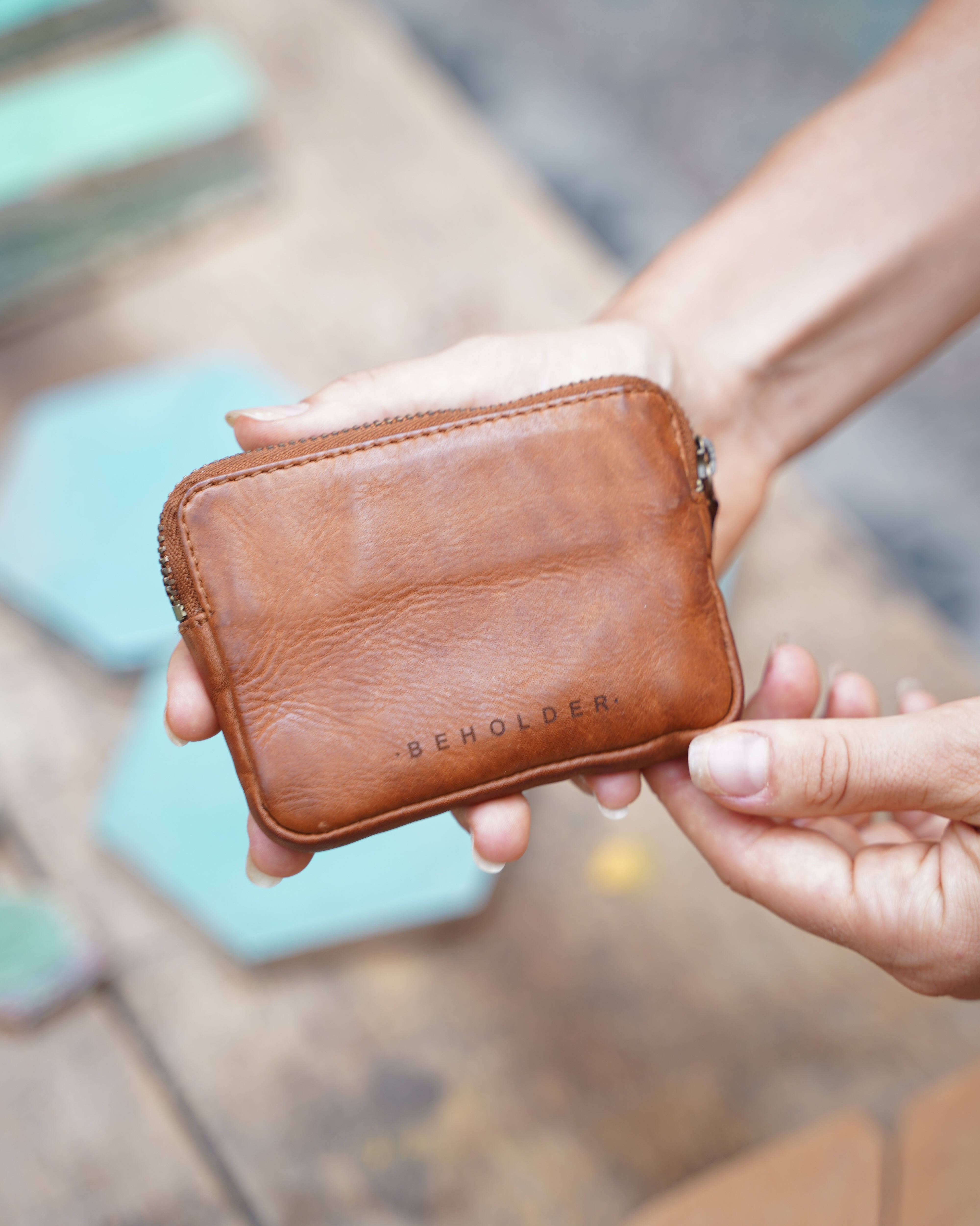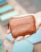 This perfect little pouch, fits 10+ cards, created from washed vegetable tanned leather.